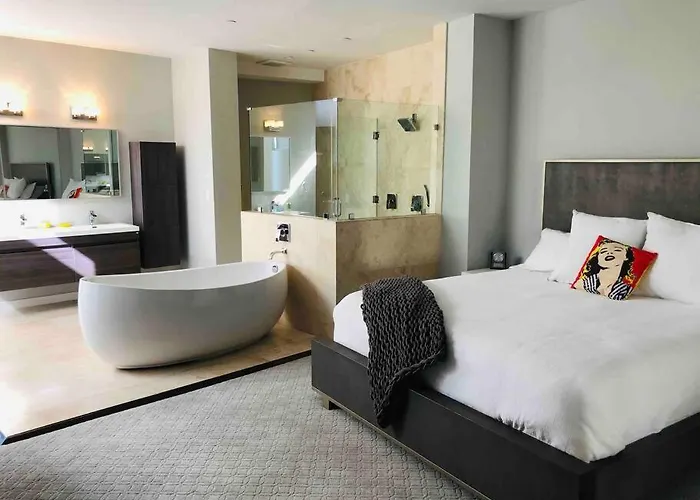Situated just 6 minutes' stroll from The Viper Room Night Club, the 186 ft² Penthouse Luxury W/ 4 Stories- Private Los Angeles offers proximity to various nearby tourist attractions. This 3-bedroom apartment features Wi-Fi, along with parking for guests traveling by car.